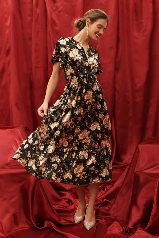 Floral Velvet Midi Dress