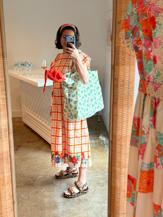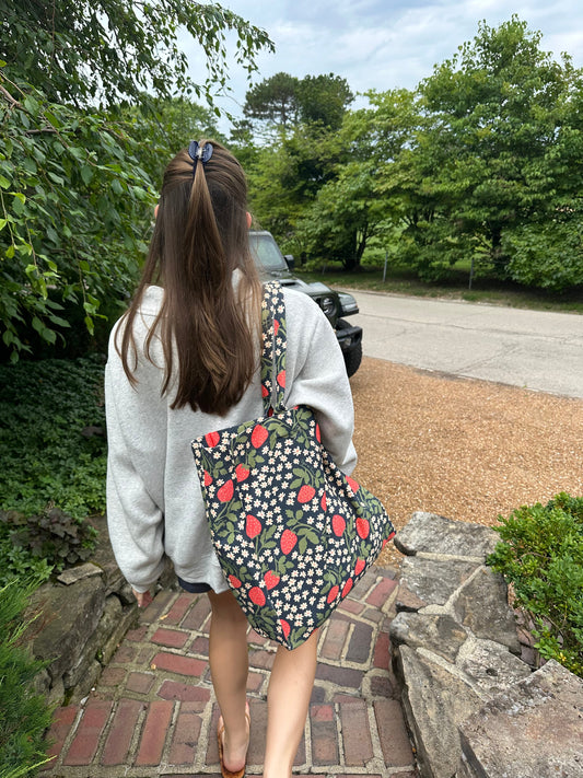 Jumbo Slouchy Denim Tote, POP ART ROSES