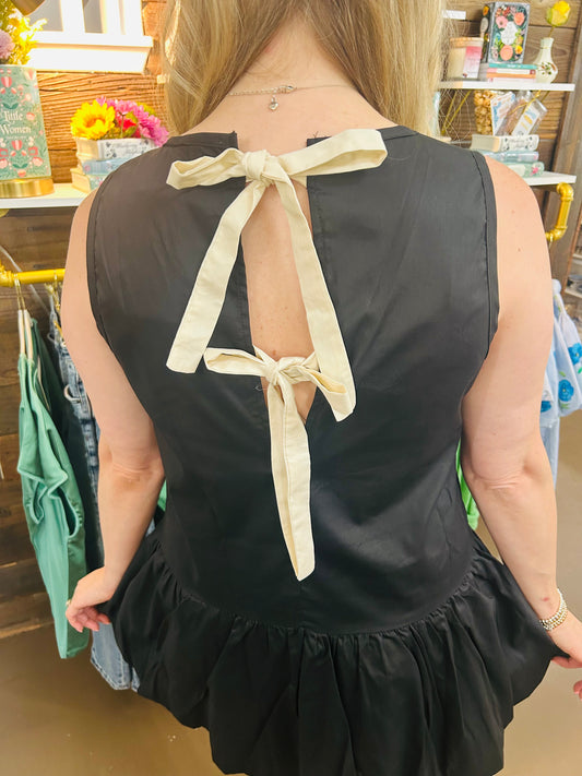 Ribbon Tie Mini Bubble Hem Dress