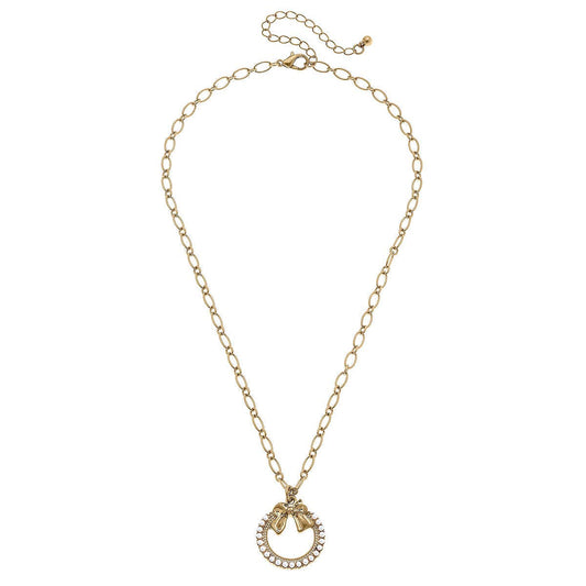 Rowen Pearl Bow Wreath Pendant Necklace in Worn Gold