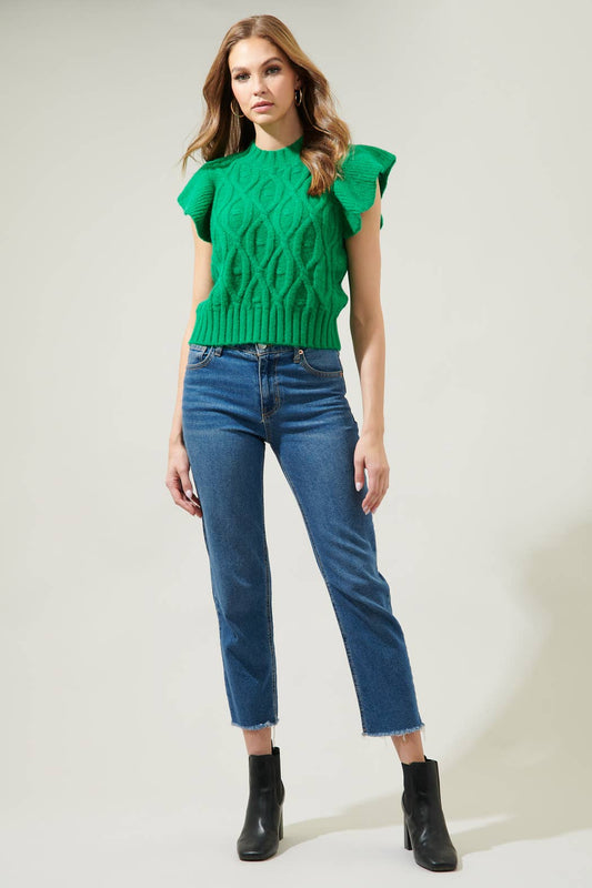 Tatum Flutter Sleeve Cable Knit Sweater Top