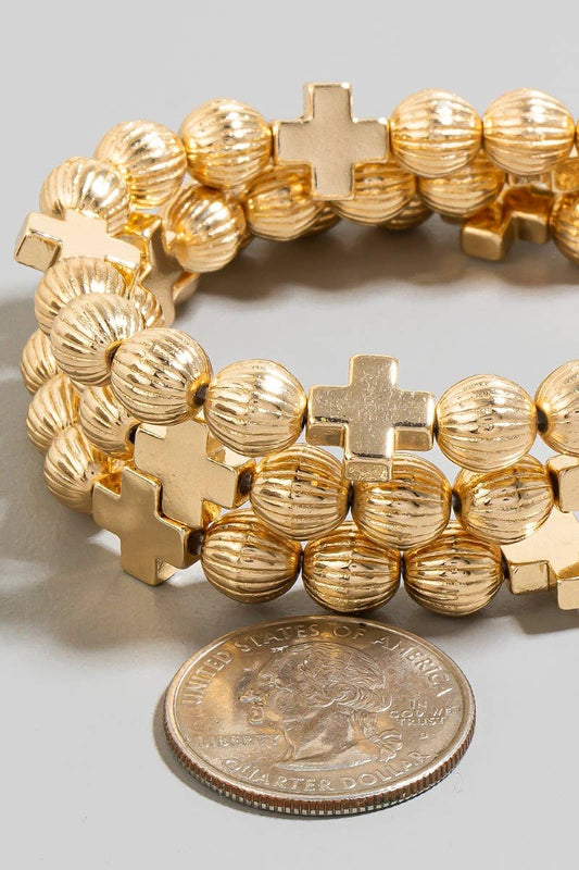 The Looks by Fame Accessories - Textured Beads And Cross Charms Bracelet Set