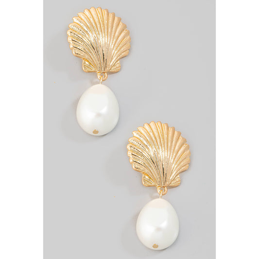 The Looks by Fame Accessories - Clam And Pearl Dangle Stud Earrings