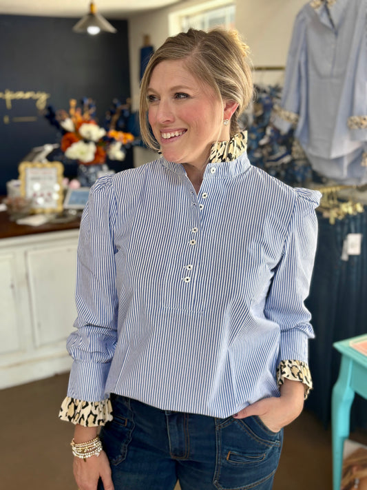 Dizzy Lizzy Blue Striped/Cheetah Top