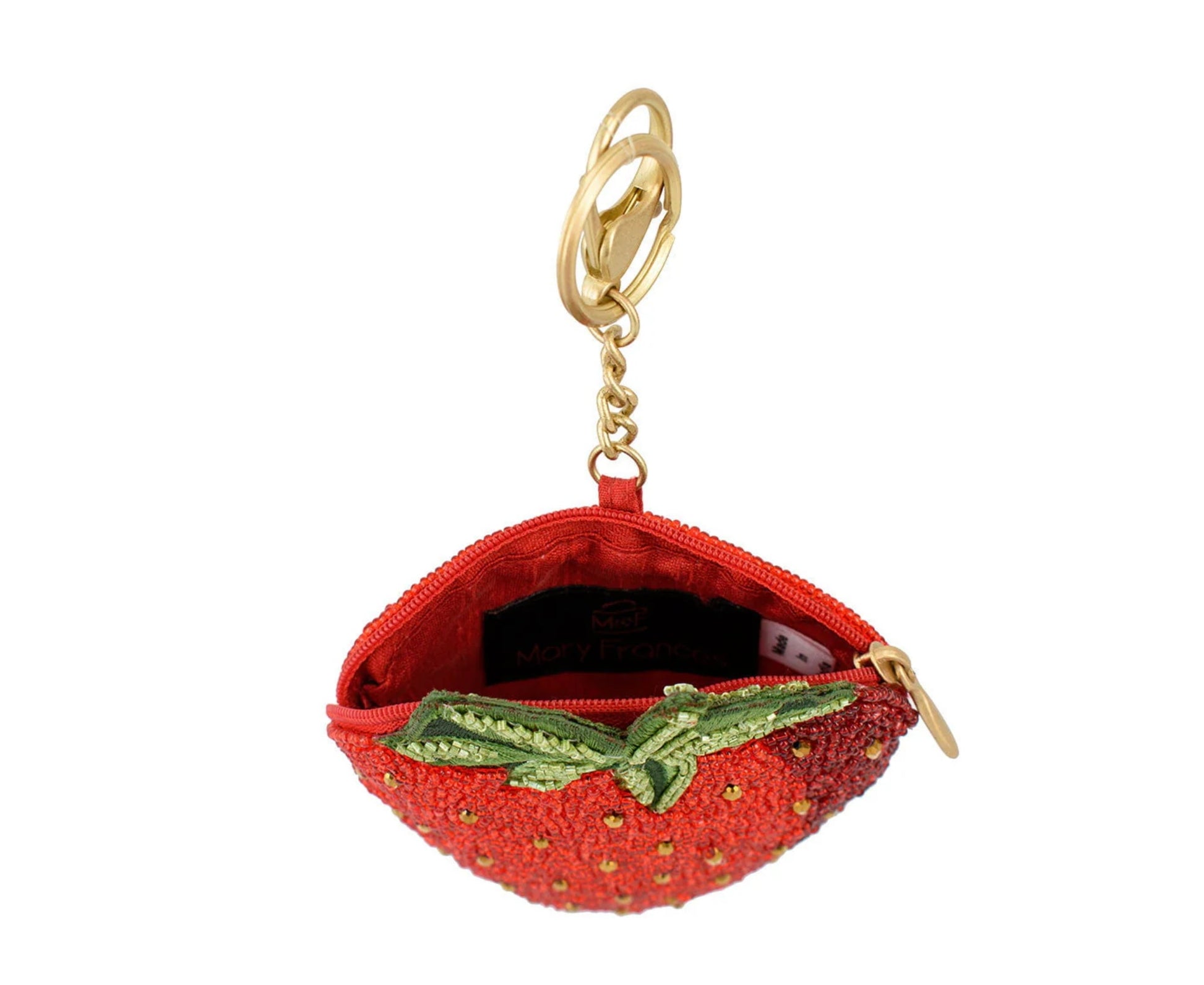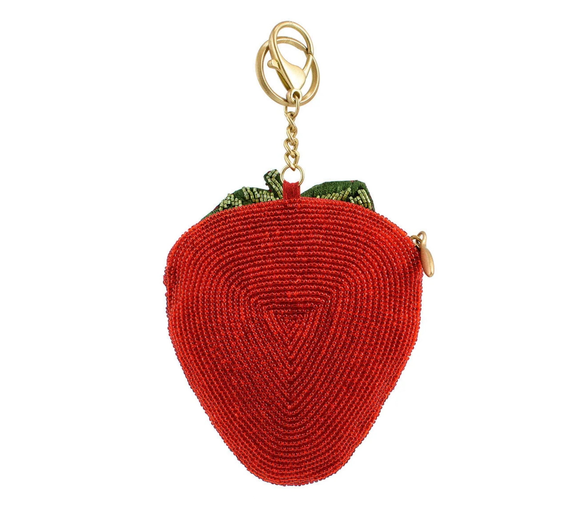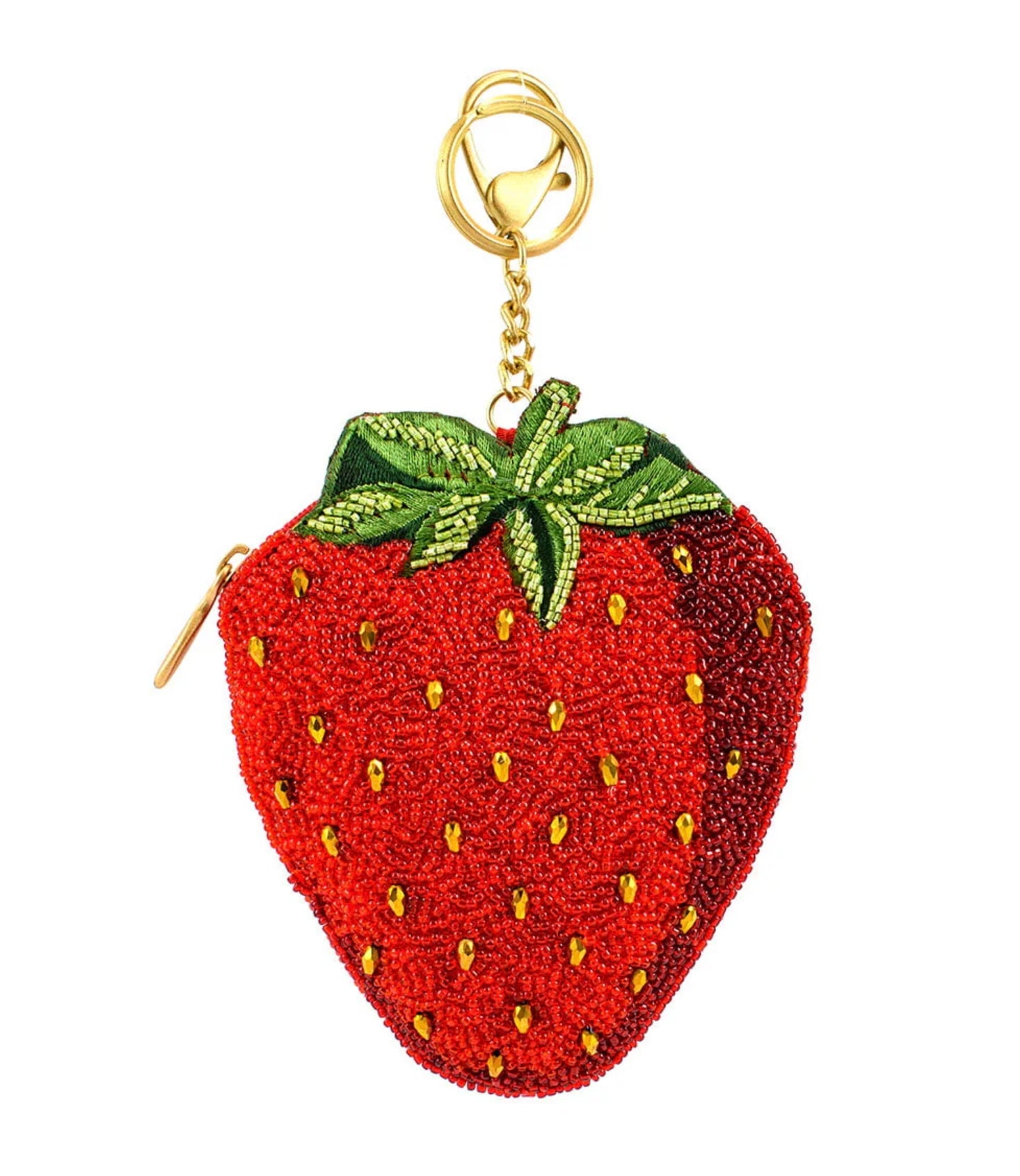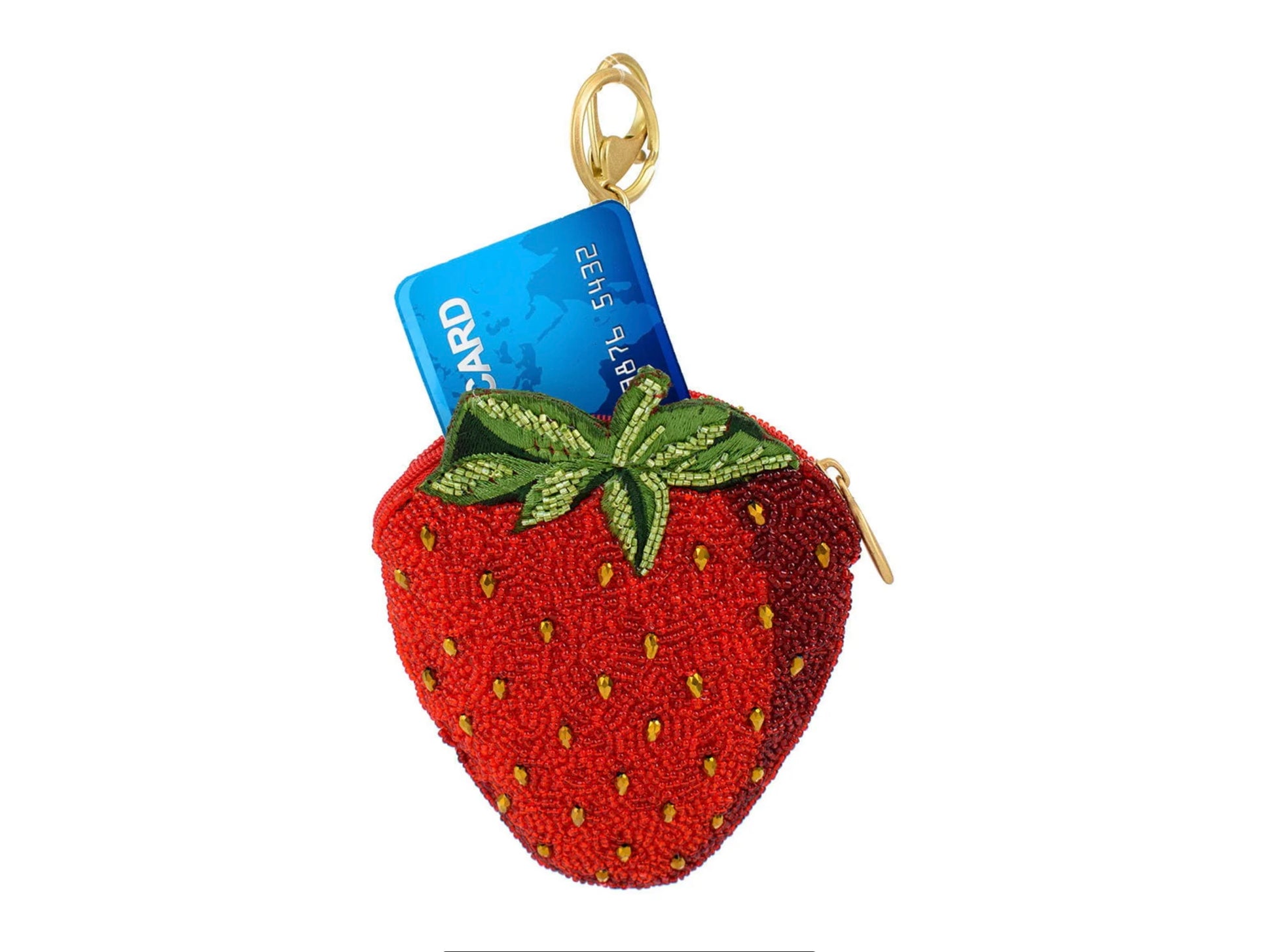 This adorable strawberry coin purse is ready to add playful charm to every bag and outfit! Its easy-open hook makes it a snap to attach to any handbag or belt loop, and it fits a credit card so it can double as a wallet.