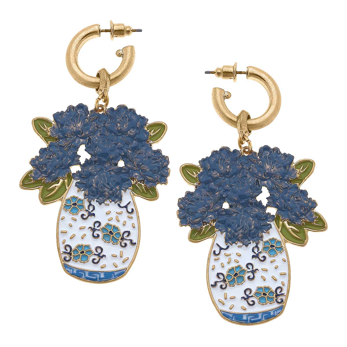 CANVAS Style - Sofia Enamel Hydrangea Ginger Jar Earrings in Blue & White