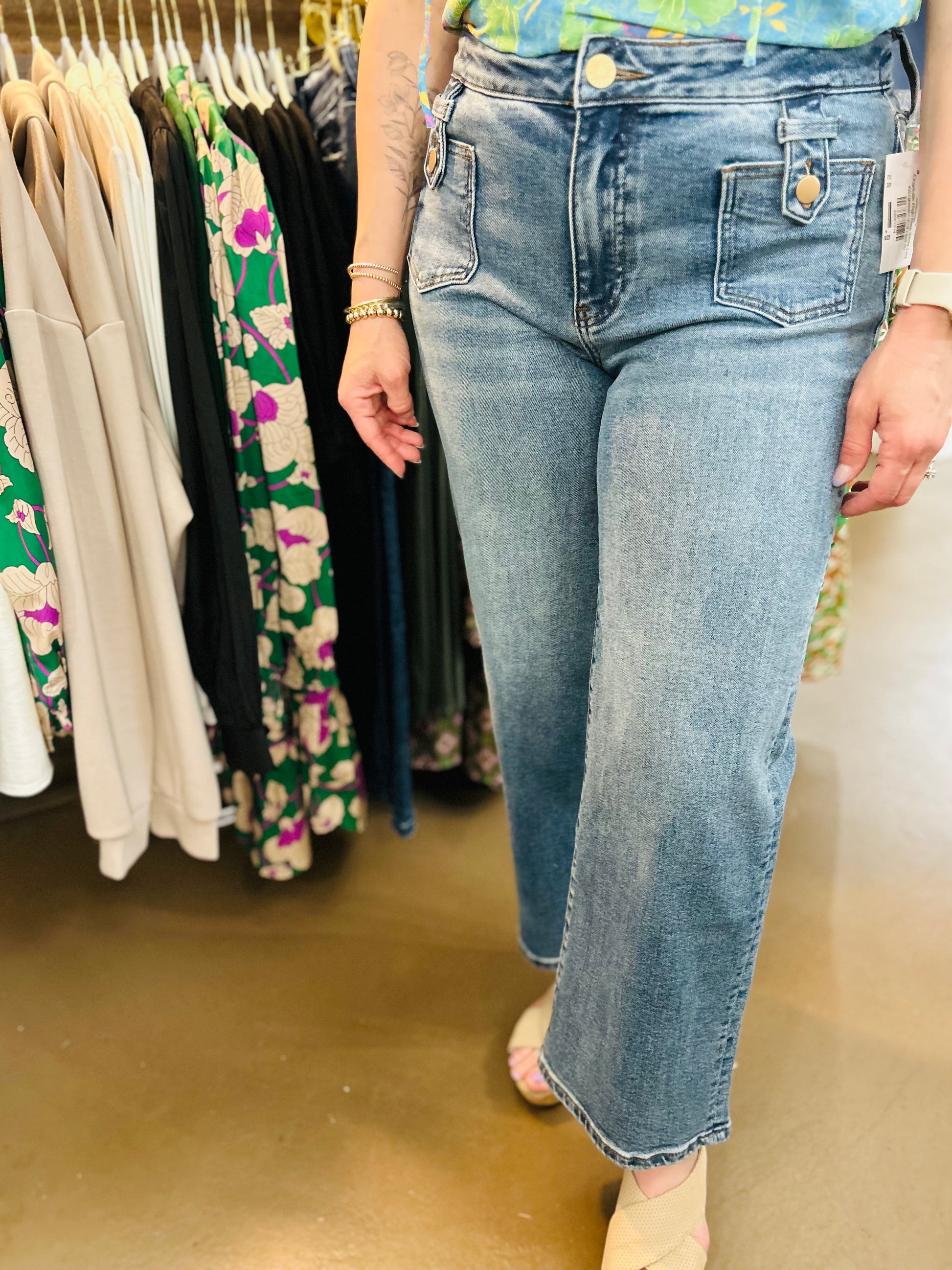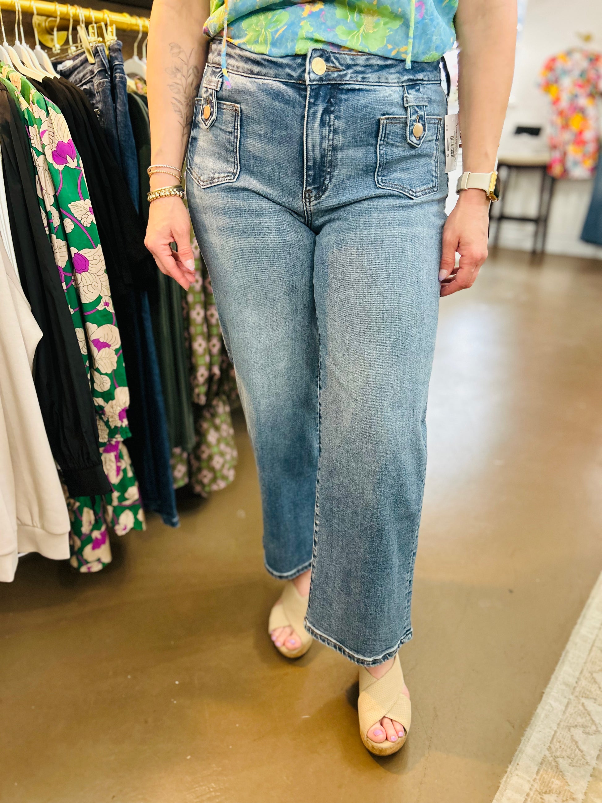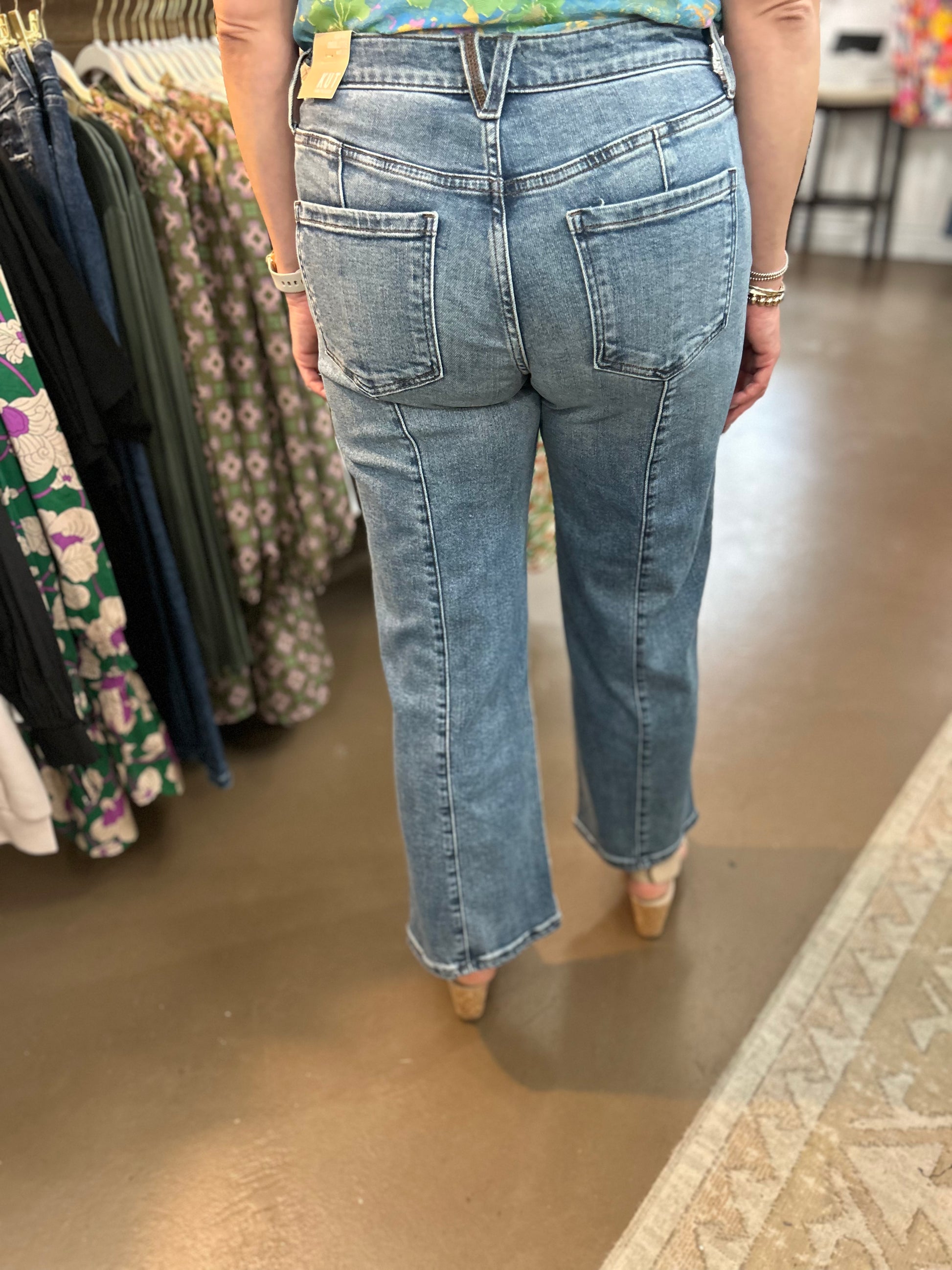 The front pockets on these Kut jeans elevate them to a new level. Plus the wide leg adds to the perfect touch.