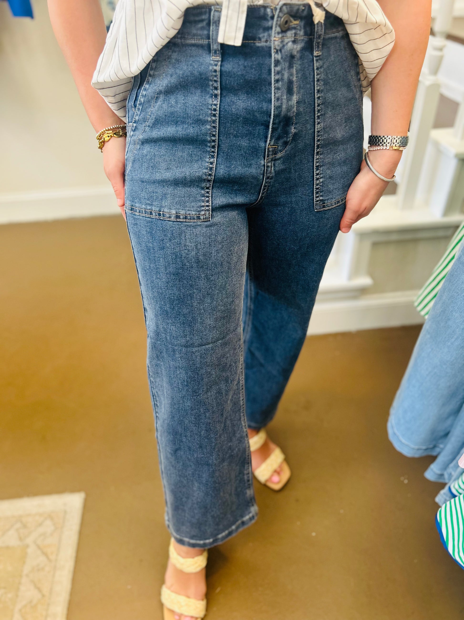 Master casual chic with these cropped jeans that feature stylish utility pockets. The comfortable fit is uniquely designed to breathe, allowing you to stay cool, even on the warmest days. Intelligently crafted from breathable materials, these jeans are designed to fit perfectly and move with you for ultimate comfort. Whether dressing up or keeping it casual, they will go perfectly with anything in your spring wardrobe.