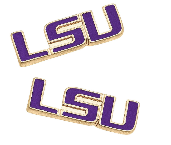 LSU Tigers enamel stud earrings in purple.