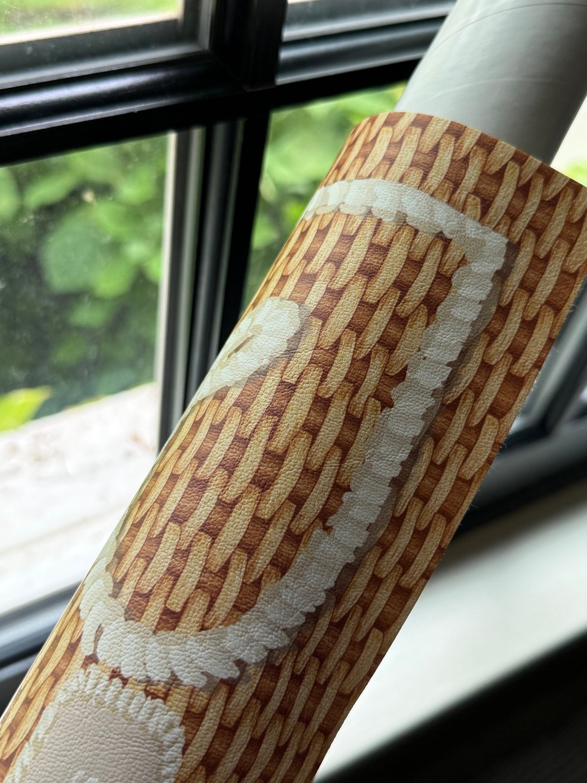 A square mat with coastal credentials. This 31.5" beauty features a trompe-l’oeil Nantucket basket weave—classic, clean, and quietly chic. The printed American Mahjong rules run along the edge for easy reference (no more mid-game searches), and the whole thing wipes clean in one swipe.