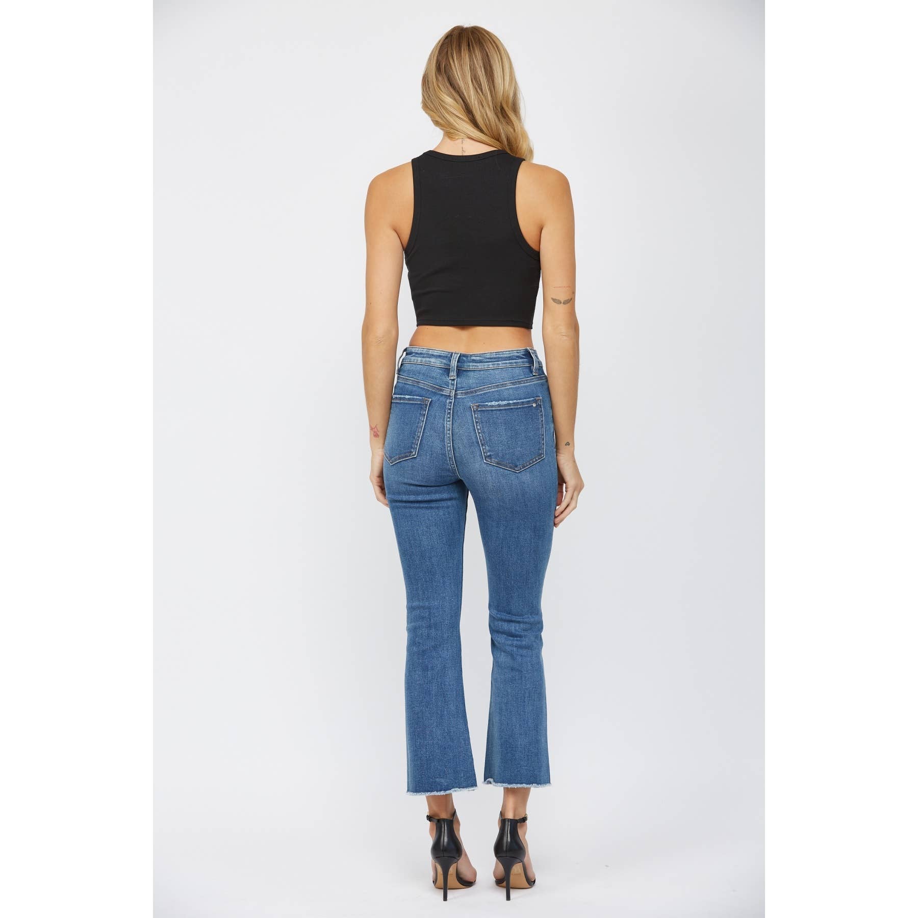Mica Denim - HIGH RISE CROP FLARE WITH BUTTON UP