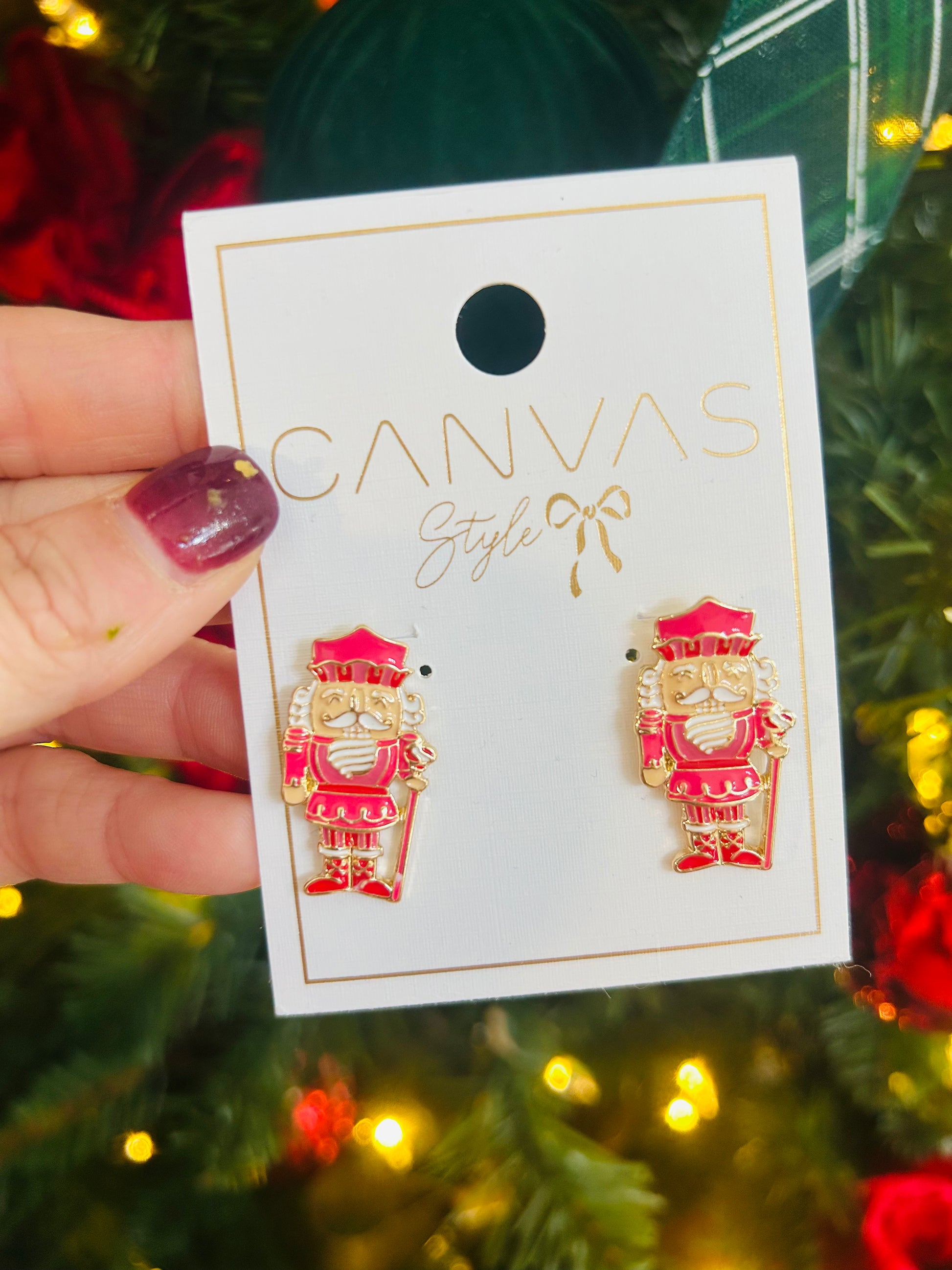 short nutcracker stud earrings in pink and red combo