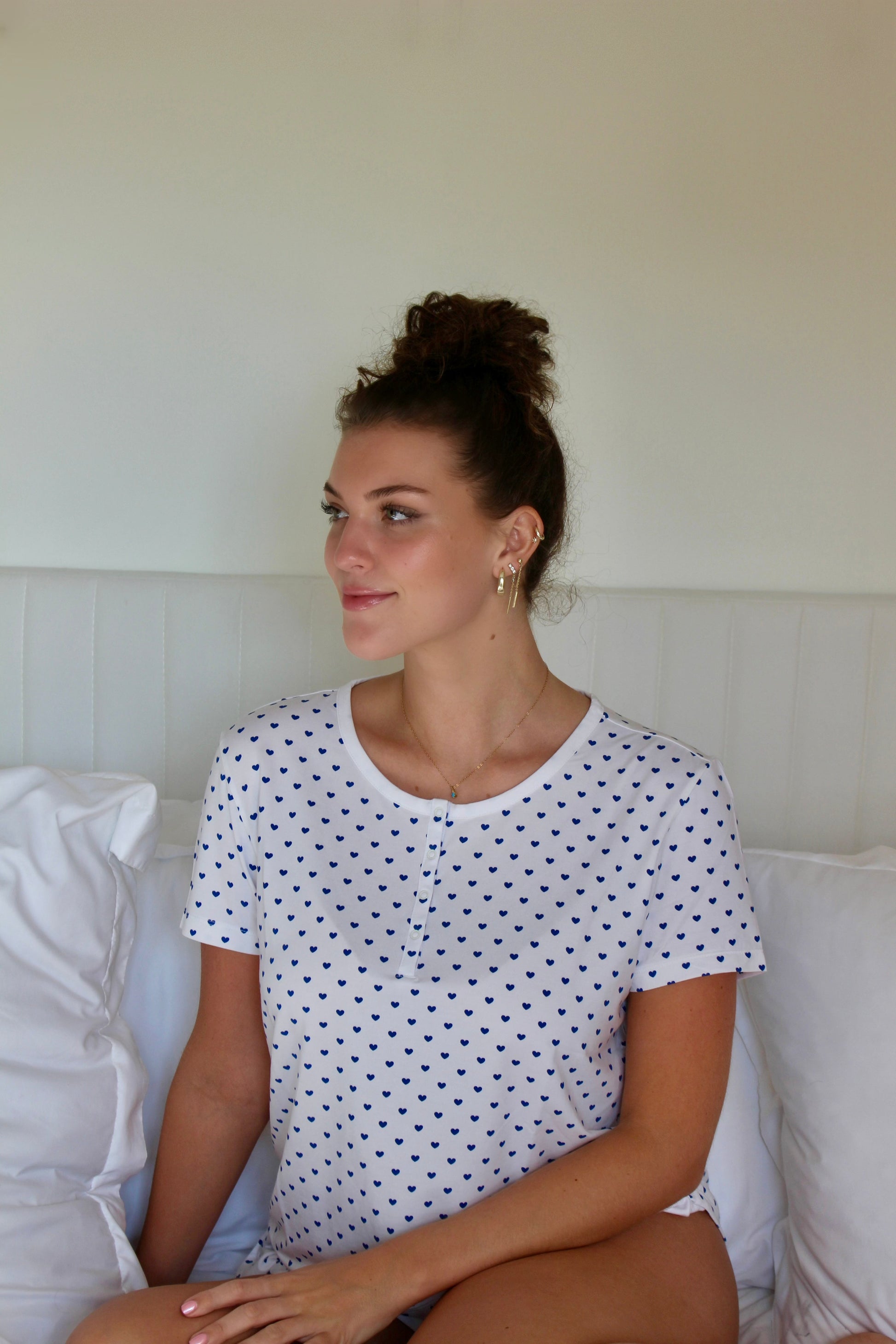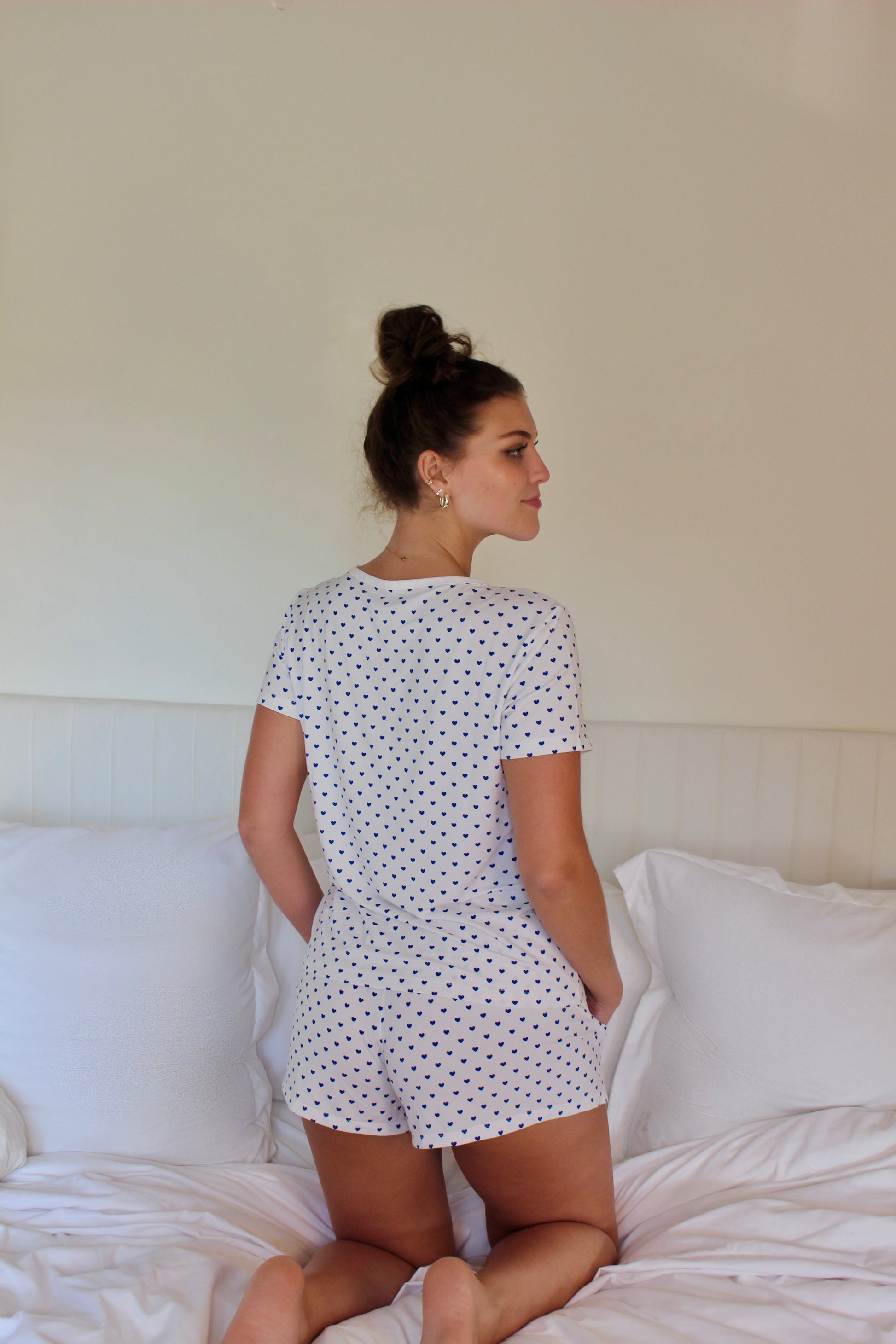 Cozy and polished with a romantic touch, the Soft Slumber Set is made to elevate your nighttime routine. Featuring our signature heart pattern, it's crafted from soft, stretchy modal fabric for breathable, lightweight comfort. The Henley top pairs perfectly with relaxed-fit shorts, complete with a wide, stretchy waistband that hugs gently for a secure yet flexible fit.